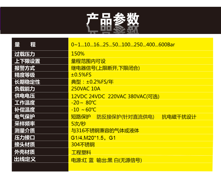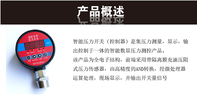 智能壓力開關(guān)(控制器)是集壓力測量,顯示,輸出控制于一體的智能數(shù)顯壓力測控產(chǎn)品該產(chǎn)品為全電子結(jié)構(gòu),前端采用帶隔離膜充油壓阻 路當(dāng)式壓力傳感器,由高精度的AND轉(zhuǎn)換,經(jīng)微處理器運算處理,現(xiàn)場顯示,并輸出開關(guān)量信號。 詳細(xì)安裝調(diào)試鏈接:http://m.zygsb.cn/gongchenganli/45.html