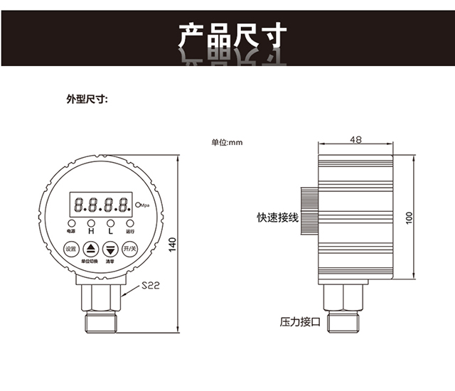 低壓壓力開關(guān)高耐壓密封處理,表盤直徑100MM;數(shù)字顯示更清晰!